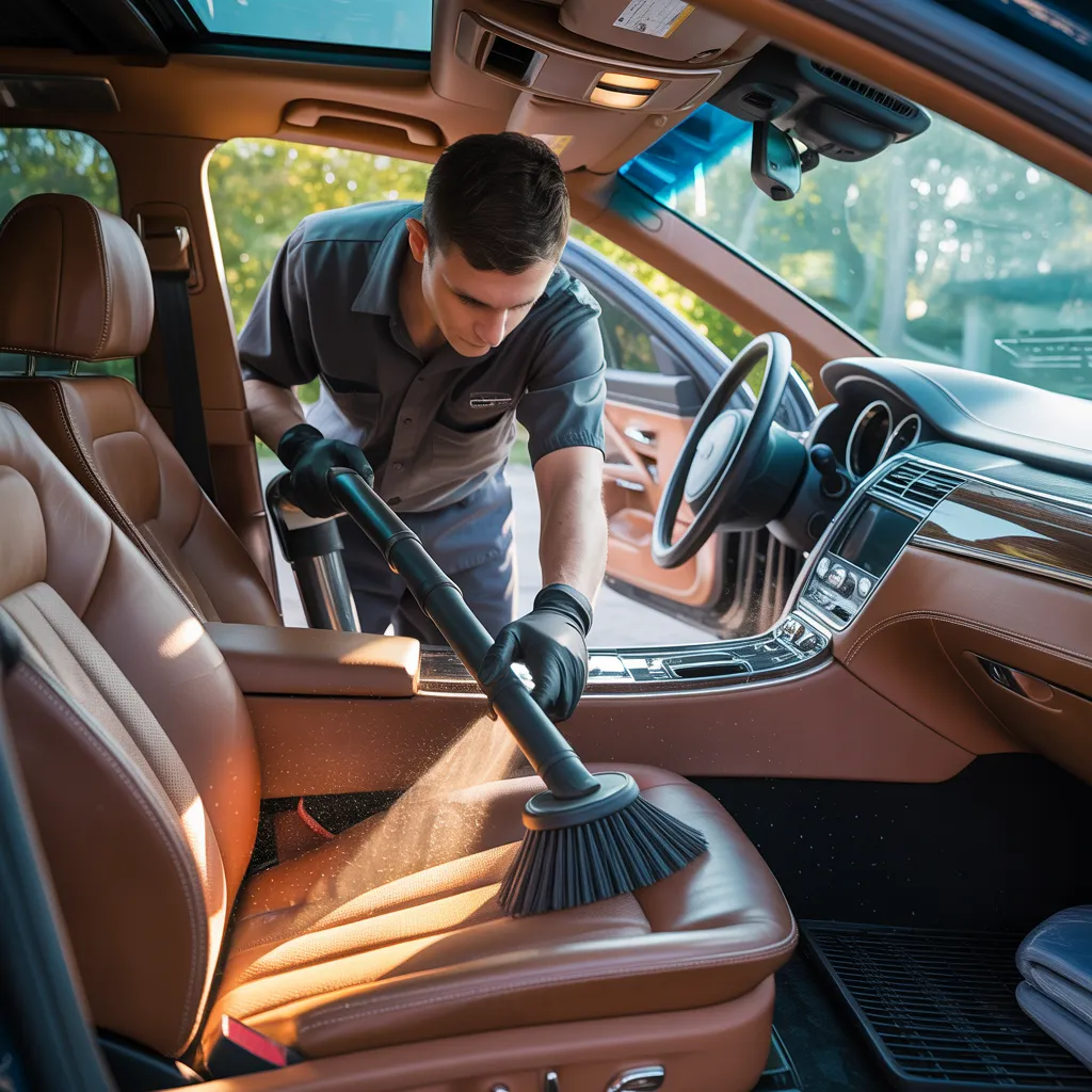 Once the exterior is prepped, the detailer moves inside, vacuuming seats and carpets to eliminate dirt and debris. Upholstery is then treated with appropriate cleaners, while hard surfaces are wiped down and sanitized. Afterward, windows are cleaned for clarity. As a finishing touch, a high-quality wax or sealant is applied to the exterior surfaces, boosting both the vehicle's gloss and its protective coating. This complete detailing process delivers an impeccably finished vehicle, ready for the owner's enjoyment.